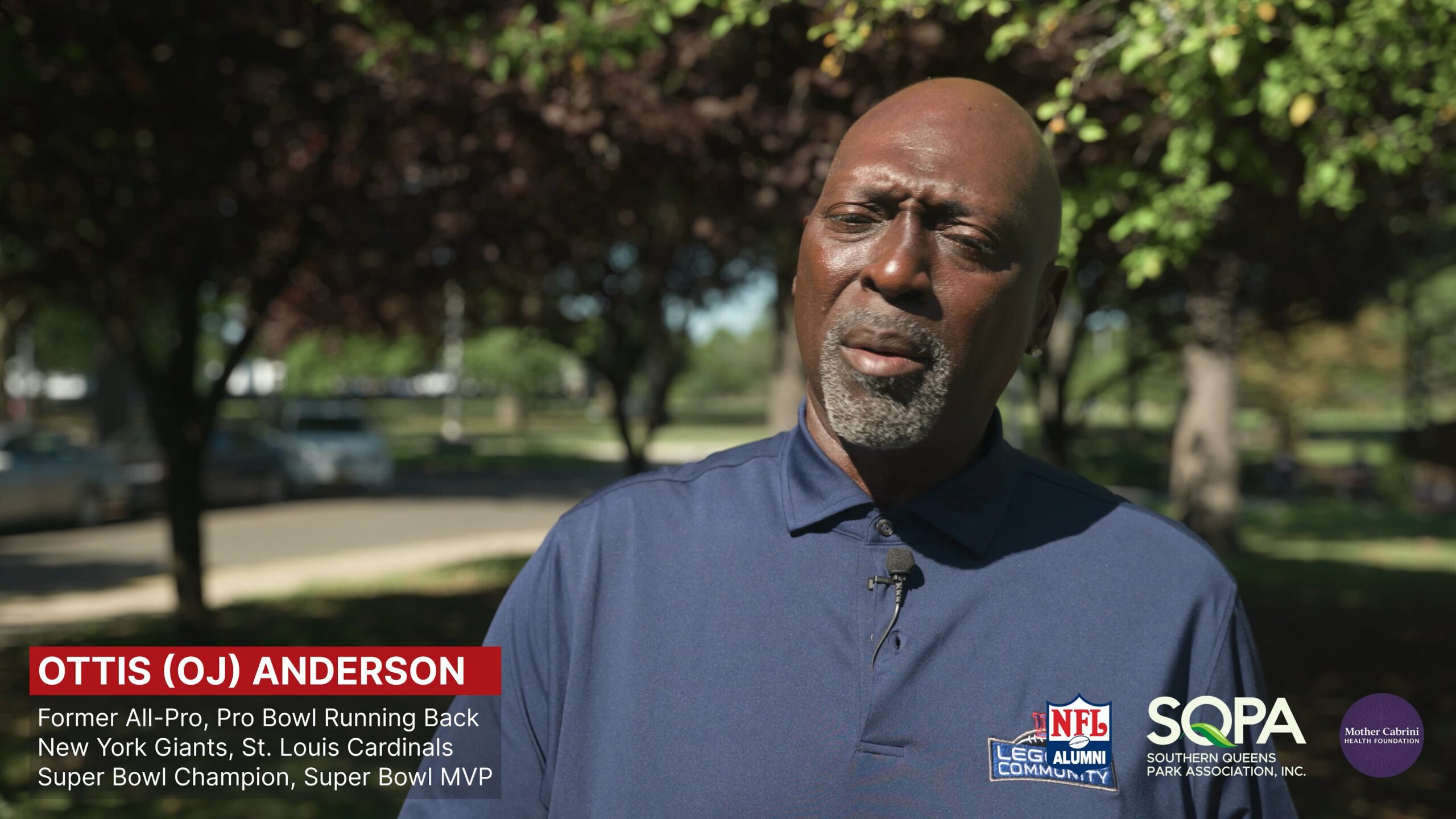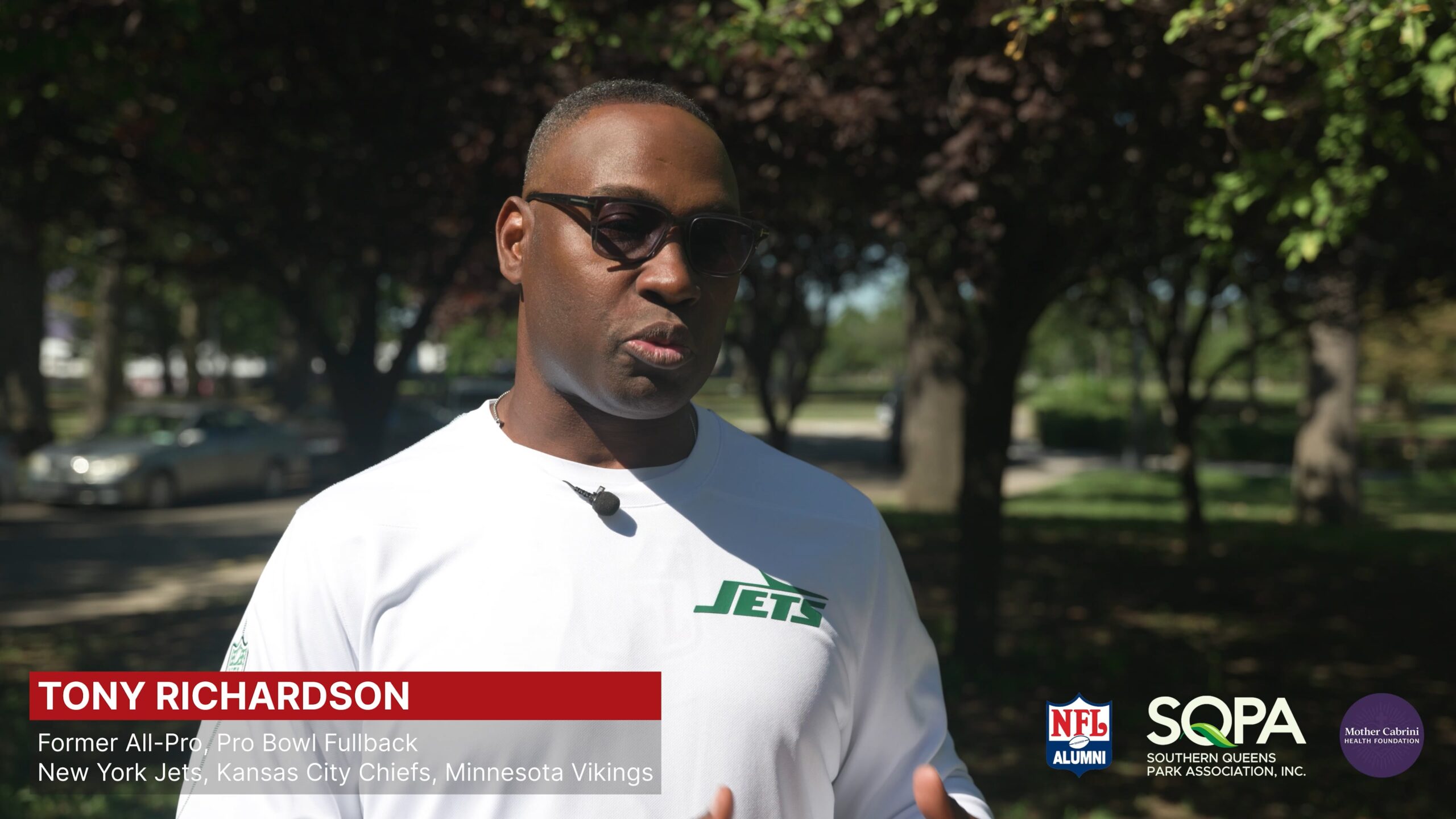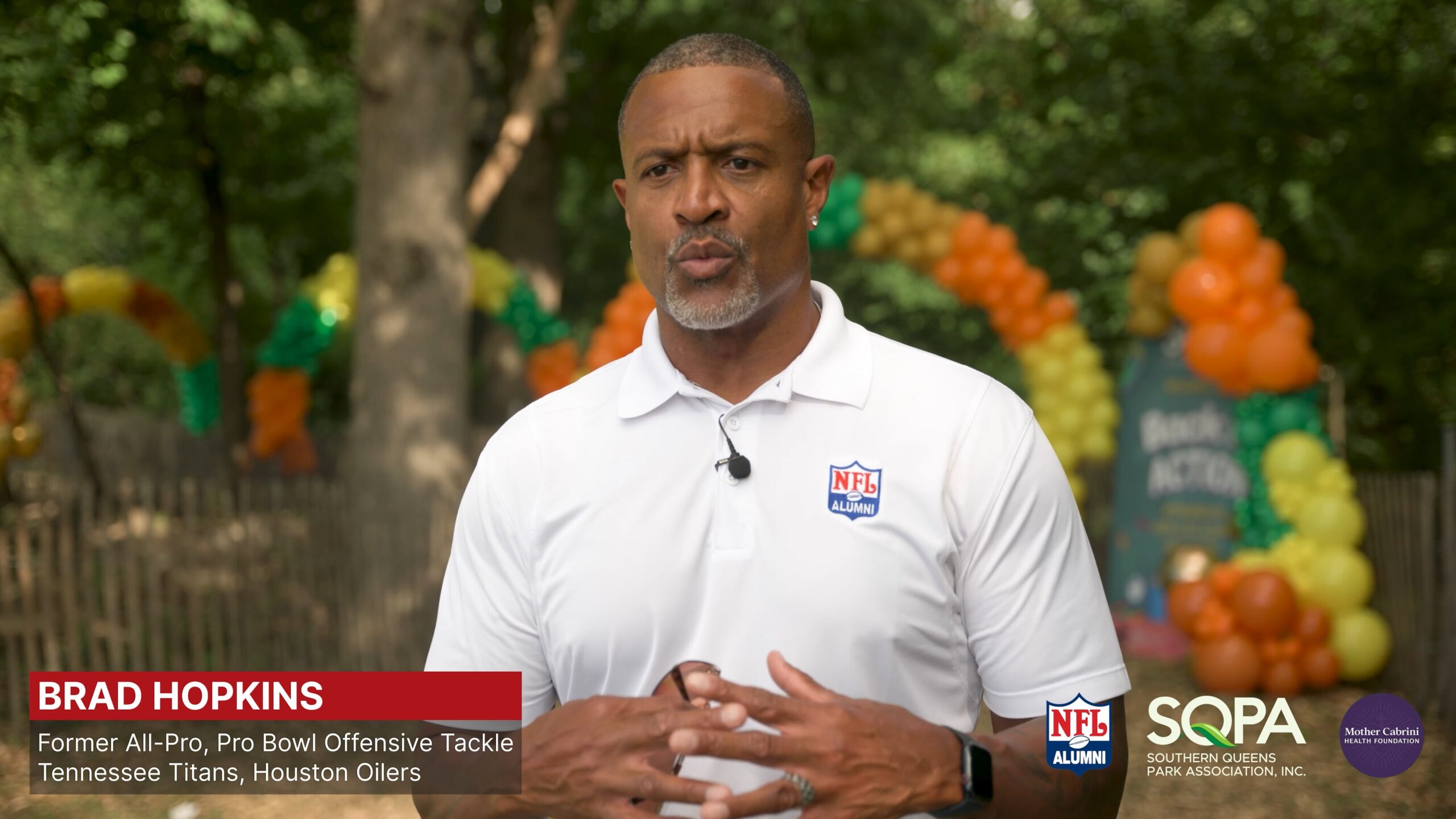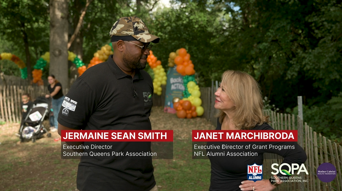 NFL Alumni Teams Up with SQPA and Mother Cabrini Health Foundation for Wellness Event in NYC NFL Alumni’s Brad Hopkins and Janet Marchibroda Speak with Jermaine Sean Smith, Southern Queens Park Association Brad Hopkins Former All-Pro, Pro Bowl Offensive Tackle Tennessee Titans, Houston Oilers Catherine Calvo Community Engagement Officer Mother Cabrini Health Foundation Tony Richardson Former All-Pro, Pro Bowl Fullback New York Jets, Kansas City Chiefs Minnesota Vikings Ottis (OJ) Anderson Former All-Pro, Pro Bowl Running Back New York Giants, St. Louis Cardinals Super Bowl Champion, Super Bowl MVP Neil O’Donnell Former Pro Bowl Quarterback New York Jets, Pittsburgh Steelers, Tennessee Titans Sean Landeta Former All-Pro, Pro Bowl Punter New York Giants, Rams, Philadelphia Eagles Super Bowl Champion